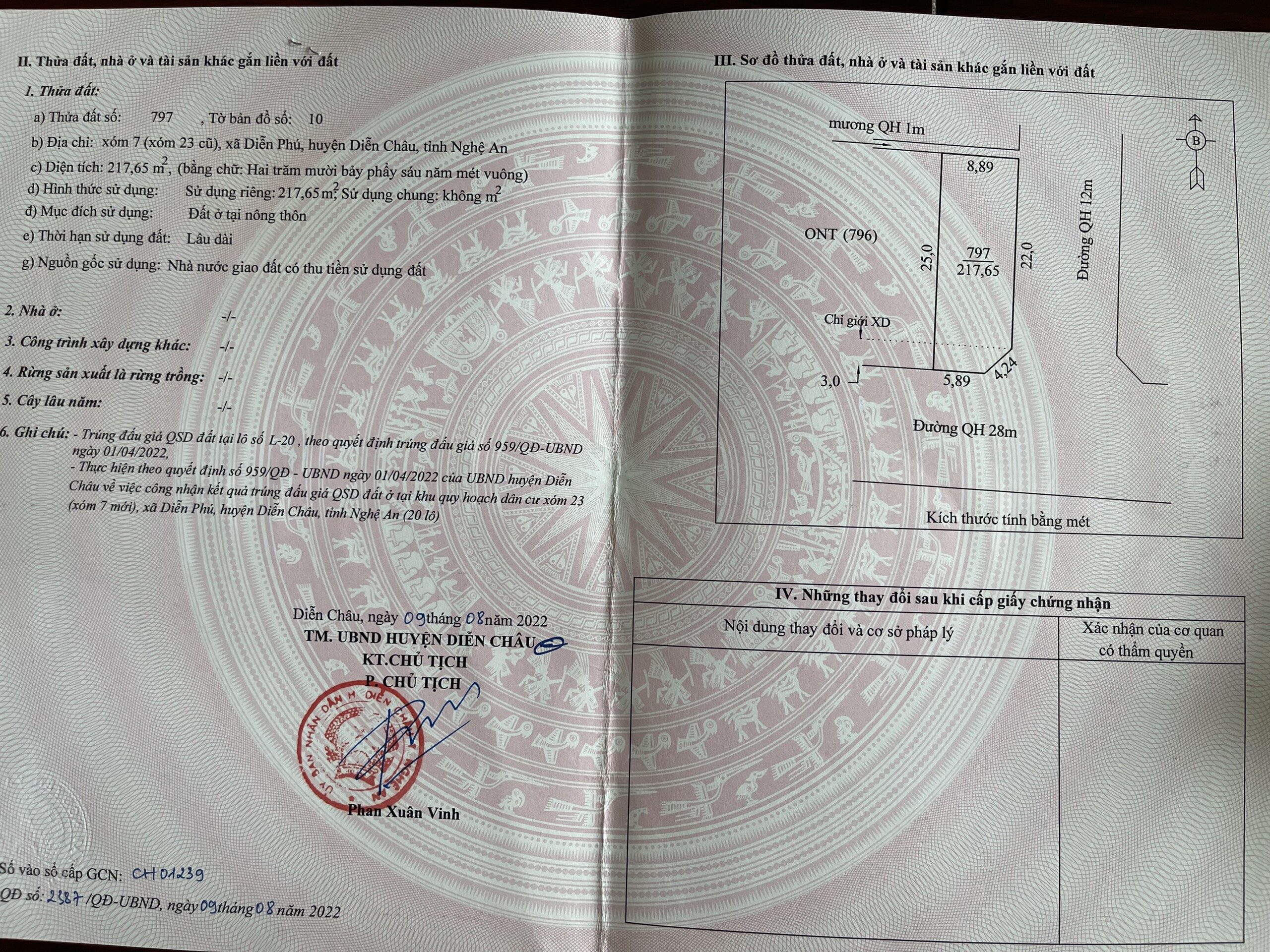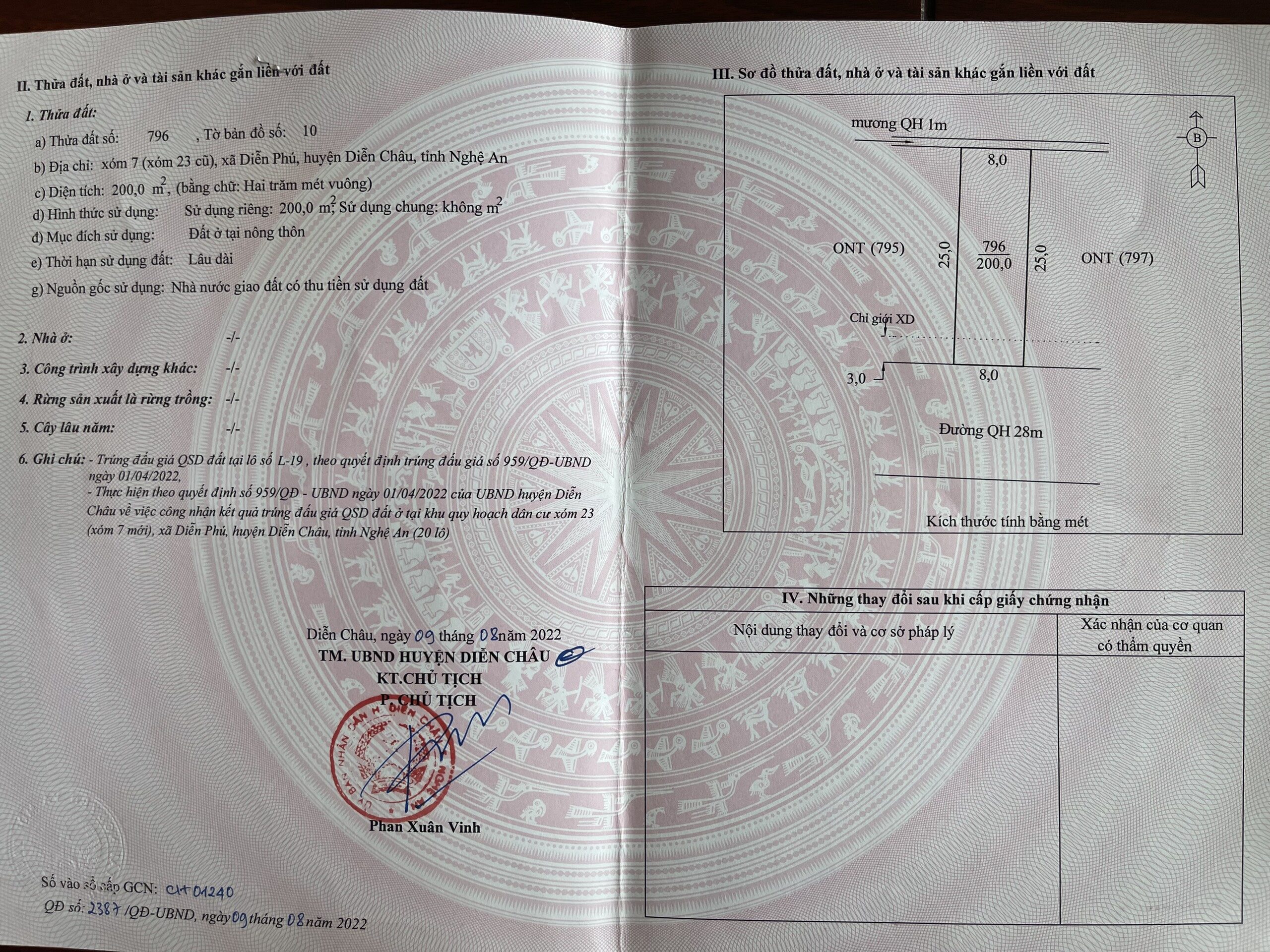✅ Chính chủ cần bán gấp đất xã Diễn Phú, Diễn Châu – Bìa đỏ chính chủ – 2 Mặt tiền 25m và 9m – Đường Quy hoạch 28m và 12m